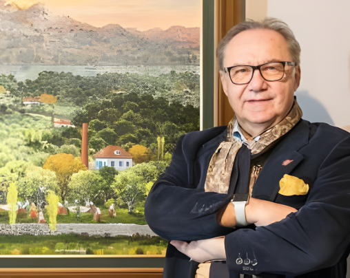 Yalçın Gökçebağ, 1944 yılında Denizli’nin Çal ilçesinde doğmuştur. İlkokuldan sonra 1954’te Gönen Köy Enstitüsü olan Gönen İlk Öğretmen Okulu’na girmiş, resim ve müzik derslerindeki başarısıyla 1957’de Çapa İlk Öğretmen Okulu Resim Semineri’ne katılmıştır. Burada üç yıl boyunca Malik Aksel ve İlhami Demirci’den temel resim eğitimi almıştır. 1961’de mezun olduktan sonra Denizli Şirinköy’de ilkokul öğretmeni olarak göreve başlamış, bir yıl sonra 1963’te Gazi Eğitim Enstitüsü Resim Bölümü’ne girerek 1966’da mezun olmuştur. Akşehir İlköğretmen Okulu’na resim öğretmeni olarak atanmış, 1970’te İzmir’de bir kolejde bir yıl resim öğretmenliği yapmış, 1972’de TRT’de kameraman olarak çalışmaya başlamıştır. 1990 yılında Orta Doğu Teknik Üniversitesi’ne öğretim görevlisi olarak giren sanatçı, Anadolu temalı resimlerinin çıkış noktası olarak Akşehir’deki görev yıllarında gözlemlediği ‘Pancar Arabaları’ sahnelerini işaret eder. Gökçebağ, çalışmalarındaki naivite tartışmalarına ilişkin olarak eğitimli bir sanatçı olarak naif akımın tanımıyla birebir örtüşmediğini, ancak yorumlarında saf ve temiz bir duygu bulunduğunu ifade eder. 2021 yılında doğaya, mevsimsel dönüşümlere ve kır yaşamına dair özgün anlatımı; peyzaj resmine getirdiği yenilikler; taklit edilmesine rağmen ayırt edilebilir üslubu ve Türk resmini yurt içi ve yurt dışında başarıyla temsil etmesi gerekçeleriyle ÇAĞSAV Onur Ödülü’ne layık görülmüştür. Sanatçı halen Orta Doğu Teknik Üniversitesi’ndeki görevine devam etmektedir. ©Tüm yazı ve görseller tr.wikipedia.org/wiki/Yalçın_Gökçebağ ve https://www.yalcingokcebag.net/ üzerinden alınmıştır.
